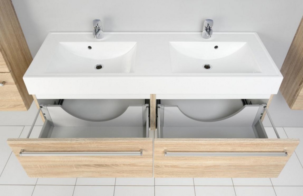 VARIETE SZAFKA DĄB SAMBA cichy domyk MB + umywalka podwójna 120 cm